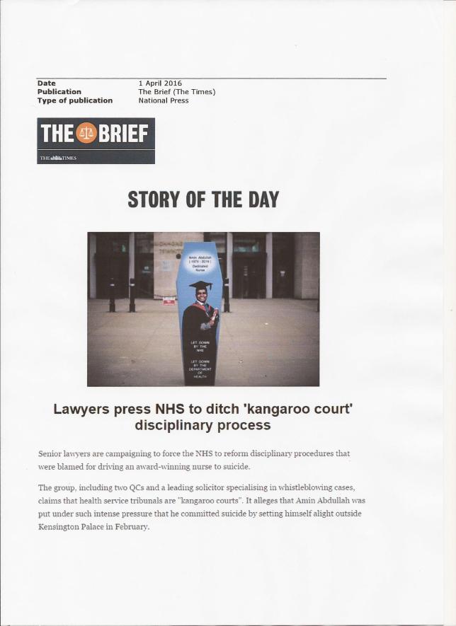 Attempts to take his case for being a whistle-blower to an employment tribunal foundered last week. An employment appeals tribunal ruled that junior doctors are not covered by tribunals because they only have one year contracts renewed every year.
